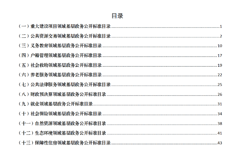 开云体育足球官网各镇(办事处、管委会)试点领域基层政务公开标准目录