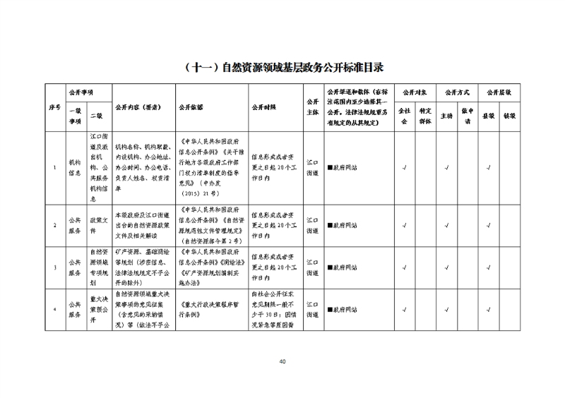 开云体育足球官网江口街道试点领域基层政务公开标准目录