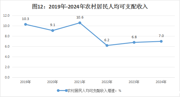 全年全县全体居民人均可支配收入比上年增长7.0%,按常住地分,城镇居民人均可支配收入增长4.8%,农村居民人均可支配收入增长7.0%。(图11、12)