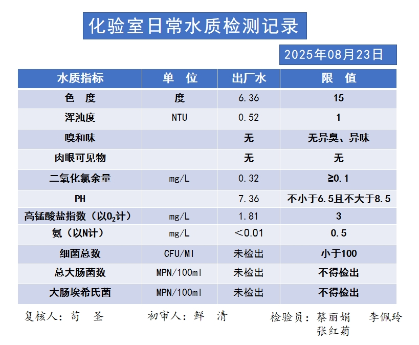 日常水质检测记录(8.23)