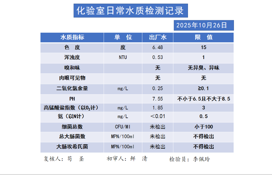 日常水质检测记录(10.26)